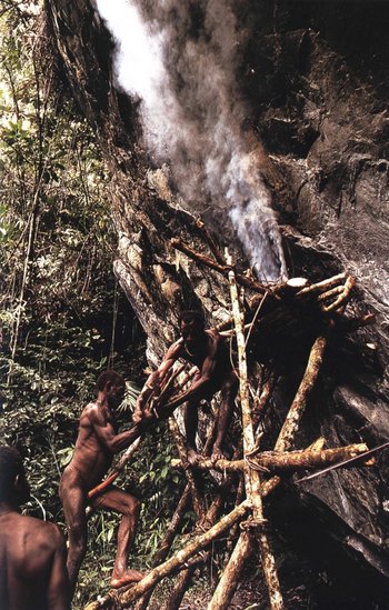 Interessant sind in Neuguinea vor allem die Regeln und Techniken beim Abbau des nur auf einem Berg vorkommenden Gesteins. Der Steinbruch ist ein heiliger und geheim gehaltener Ort, der nur von ausgewählten Männern des Clans der Wano betreten und ausgebeutet wird. Darf ein Mann eine solche etwa zweiwöchige Exkursion begleiten, gilt seine Stellung in der Gemeinschaft als gefestigt. Mit Gesängen, Gebeten und fest geregelten Kulthandlungen soll der Berg gnädig gestimmt werden. Nur die Eingeweihten wissen, wie man die »Mutter der Beile« gnädig stimmt. Durch das Feuer setzen am Gestein werden größere Stücke abgesprengt. Nach der Rückkehr ins Dorf werden die gewonnenen Felsbrocken zum Beil umgearbeitet und poliert.
