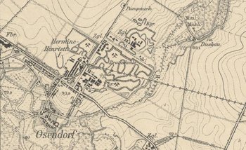 Das Dreierhaus war eine Zollstation (benannt wohl nach den dort zu entrichtenden Dreipfenniggroschen), ein Wohnplatz und Gasthaus an der alten Salzkärrnerstraße nordöstlich von Osendorf, das bereits auf der Schmettauschen Karte (1767 bis 1787) vermerkt ist und dessen Gebäude erst nach 1989 abgerissen wurden. Nordöstlich davon befand sich spätestens seit den 1840er Jahren ein zunächst untertage betriebenes Braunkohlenbergwerk namens ›Neptun‹, das 1859 unter anderem mit dem Bergwerk ›Theodor‹ bei Ammendorf zum Tagebau ›Von der Heydt‹ fusionierte. Seit den 1850er Jahren förderte auch die Grube ›Hermine Henriette‹ (I) beim Osendorfer Dreierhaus Braunkohle im Tief- und Tagebau. Die anfangs beschränkte Abbaufläche, auf dem Preußischen Urmesstischblatt (um 1840/50) bereits sichtbar, expandierte naturgemäß in der Folgezeit rapide (Abbildung 4 bis 6). In den 1920er Jahren wurde ›Hermine Henriette I‹ mit ›Von der Heydt‹ zu einem Großtagebau zusammengelegt, der bis zum Ende des Zweiten Weltkriegs Braunkohle unter anderem für die Leuna-Werke lieferte. Das Tagebau-Restloch bildet heute den Osendorfer See (Abbildung 7).