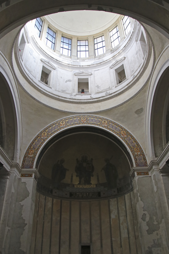 Durch die 43 Meter hoch aufragende Kuppel von 14 Meter Durchmesser erhielt der Bau einen weithin sichtbaren Akzent. Der Tambour ruht auf einem Sockel aus Sandstein, dessen vier Ecken von Pyramiden aus Basaltlava betont werden. Die Kuppel wird von einem toskanischen Säulenkranz mit dahinterliegendem Fensterband und einer mit reliefiertem Friesband aus Löwenkopfdarstellungen geschmückten Attika getragen. Den krönenden Abschluss bildet die Kupferlaterne aus acht kleinen Säulen, mit einem ursprünglich vergoldeten Kreuz aus Kupfer. Trotz ihres historisierenden äußeren Erscheinungsbildes war die darunterliegende Kuppelkonstruktion (Abbildung 2) damals hochmodern: Sie besteht aus einer Stahlkonstruktion, die ein räumliches Fachwerk bildet. Darauf befinden sich ringförmig Holzpfetten, die eine Holzschalung tragen. Ursprünglich verfügte die Mausoleumskuppel über eine Kupfereindeckung. Diese wurde jedoch bei Sanierungsmaßnahmen in den 1980er Jahren aus Gründen des Materialmangels durch eine Verkleidung aus eloxiertem Aluminium ersetzt. Unterhalb der Kuppel befindet sich ein massives Gewölbe, das den Raum der darunter liegenden Feierhalle nach oben hin abschließt.