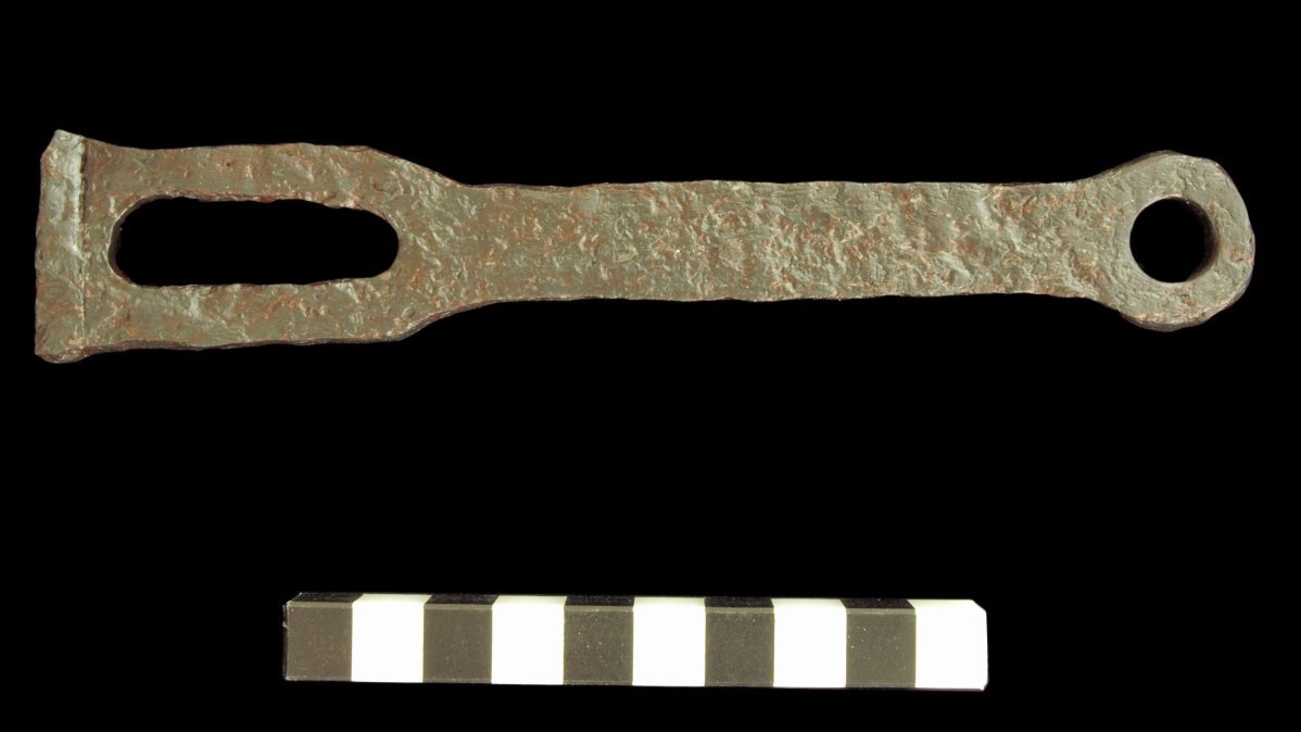Flächenbrandartige Plünderungen erfolgten im Verlauf dieses Krieges systematisch, nicht nur zur Versorgung der eigenen Truppen, sondern um dem nachfolgenden Gegner im wahrsten Sinne des Wortes verbrannte Erde zu hinterlassen und so die gegnerische Truppenversorgung immens zu schwächen – letztlich führten nicht die vermeintlichen Entscheidungsschlachten, sondern die großflächige Devastierung der Landschaft dazu, dass Heere sich geschlagen geben mussten. Dass sich die Plünderung dieses Gehöfts gelohnt haben dürfte, lassen diverse Fundstücke vermuten, die auf das einstmals gehobene Inventar hinweisen, darunter zum Beispiel die Fragmente von Fensterglas und aufwändig verzierte Ofenkacheln, sowie – besonders eindrucksvoll – Schloss und Riegel aus dem Brandschutt (Abbildungen 5a bis 5d).